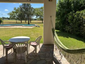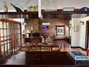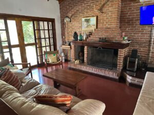 Se ingresa a un hall que permite acceder al estar con hogar a leña o al comedor y cocina.